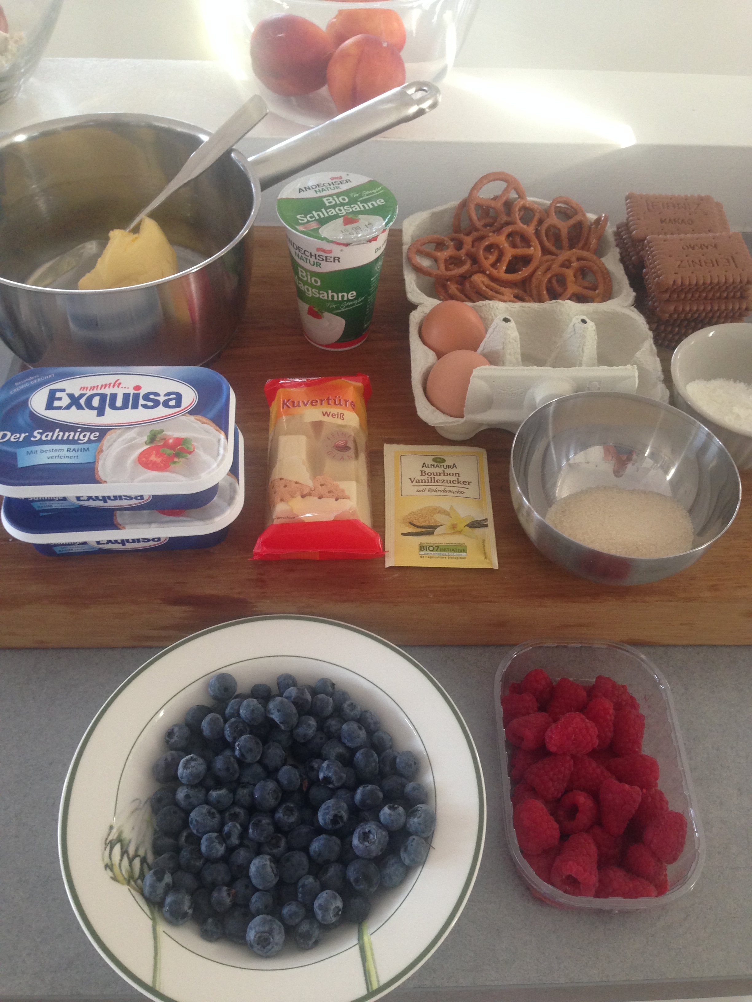 Den Kuchen wollte ich machen, weil ich noch ein paar köstliche Blaubeeren und Himbeeren verarbeiten wollte. Im Oheim hatte ich vor kurzem einen ähnlichen Kuchen gegessen und machte mich auf die Suche nach Rezepten.